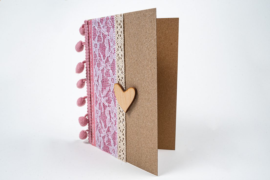 Εσωτερικά είναι κενή για να γράψετε τις δικές σας μοναδικές ευχές. Εξωτερικά είναι διακοσμημένη με δαντέλα φαρδιά σε ροζ χρώμα, κορδέλα γκρο με ευχές και τρέσα με πομ πομ και οι δύο στο χρώμα του σάπιου μήλου και δαντέλα σε εκρού χρώμα, καθώς και μια όμορφη ξύλινη καρδούλα