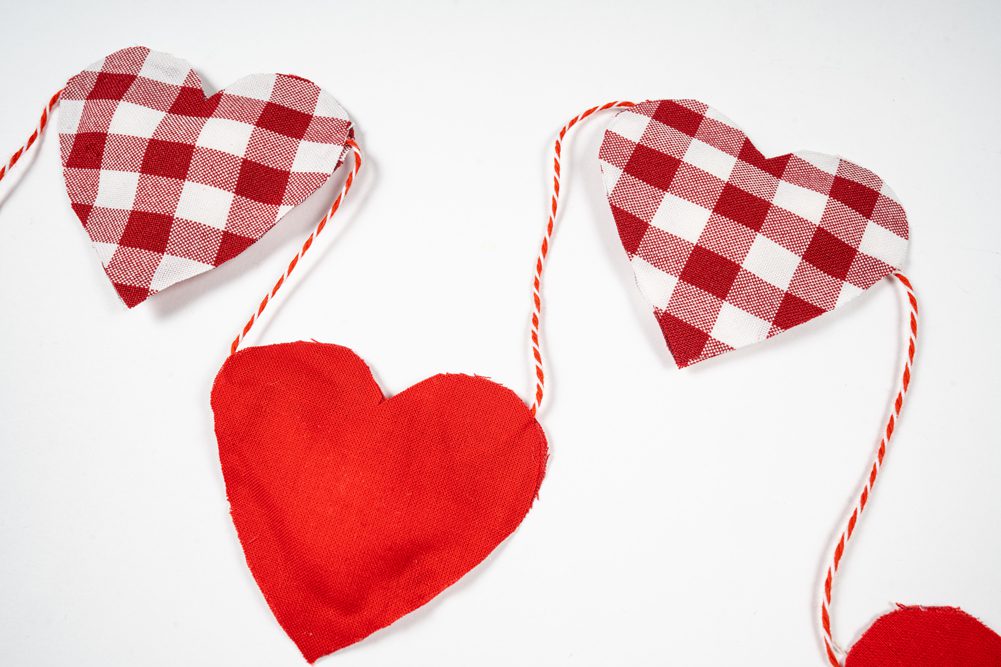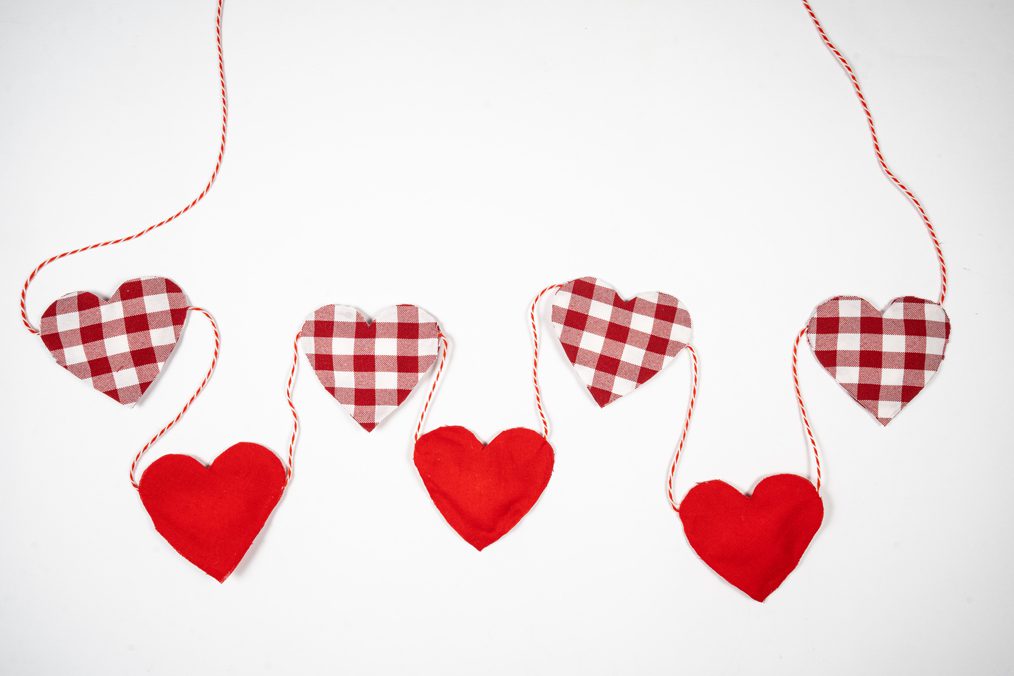 Μια ξεχωριστή γιρλάντα με 7 υφασμάτινες καρδούλες με γέμισμα βαμβάκι σε καρώ κόκκινο – άσπρο χρώμα και σε κόκκινο χρώμα. Οι καρδούλες είναι πάρα πολύ ιδιαίτερες, κρέμονται από βαμβακερό κορδονάκι σε κόκκινο- άσπρο χρώμα και μπορείτε να τις διακοσμήσετε όπως εσείς επιθυμείτε