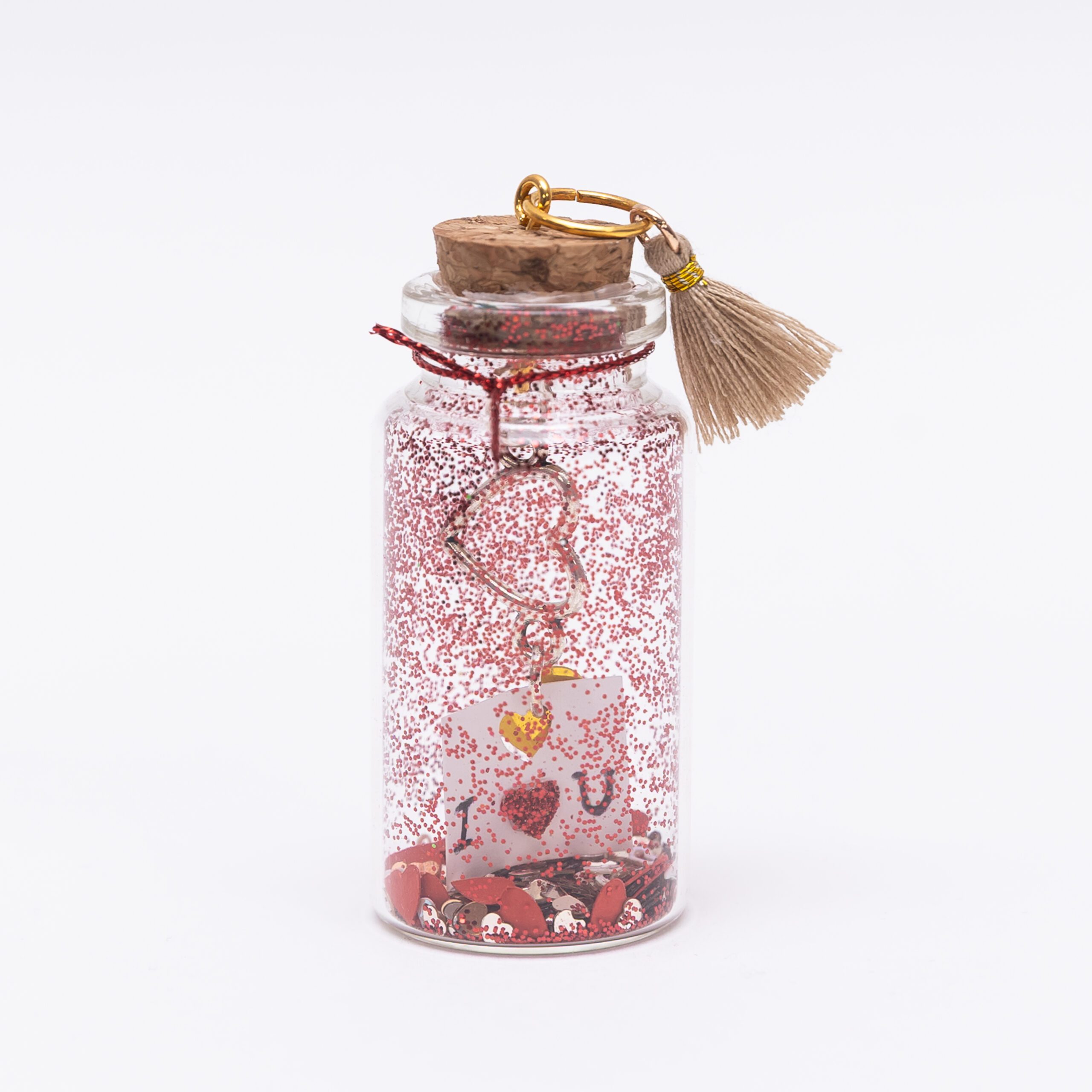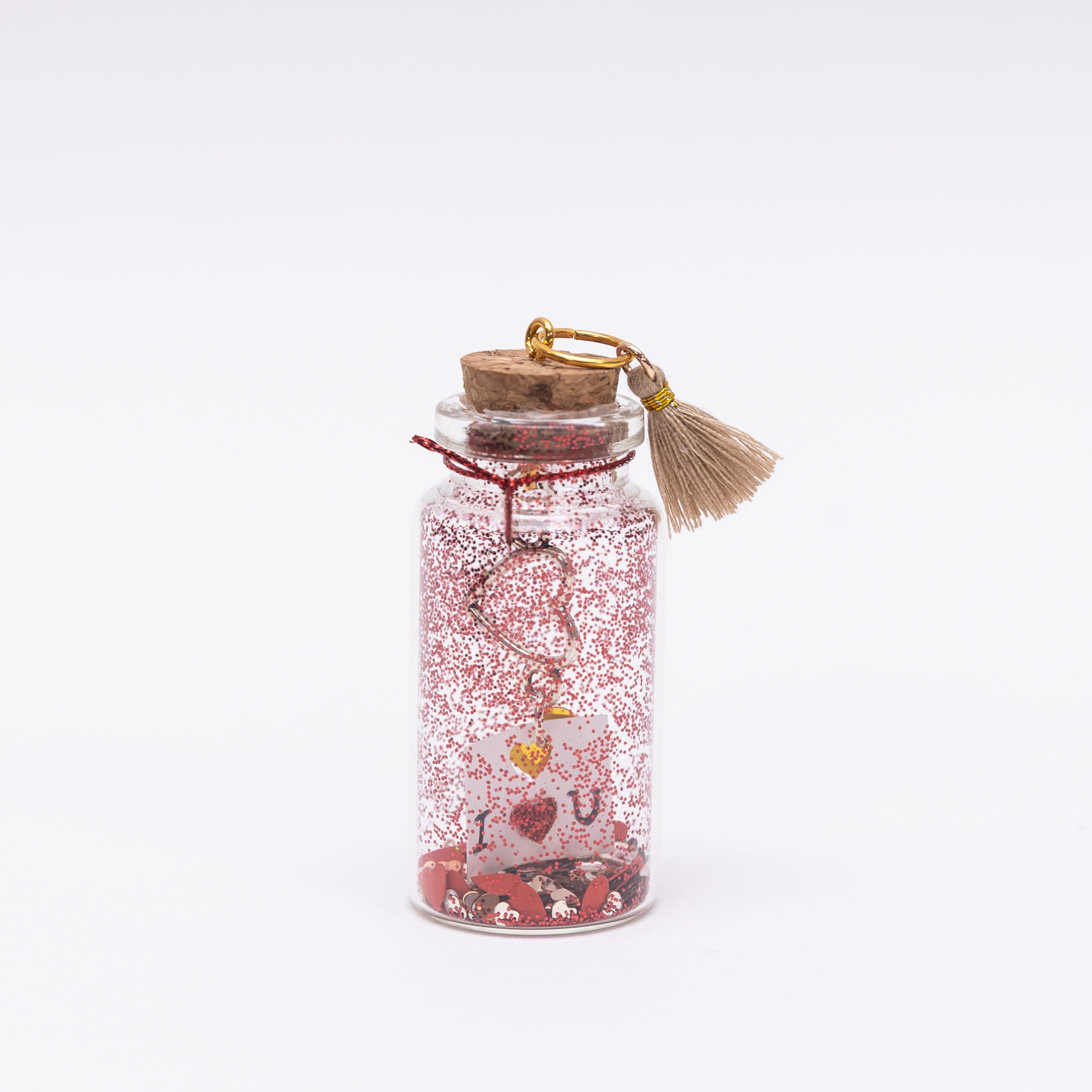 Εσωτερικά φέρει μίνι comfetti καρδούλες, κόκκινο glitter καθώς και ένα μίνι λευκό χαρτάκι που γράφει I love you με έναν ιδιαίτερο τρόπο και κρέμεται από μια ασημένια καρδούλα.