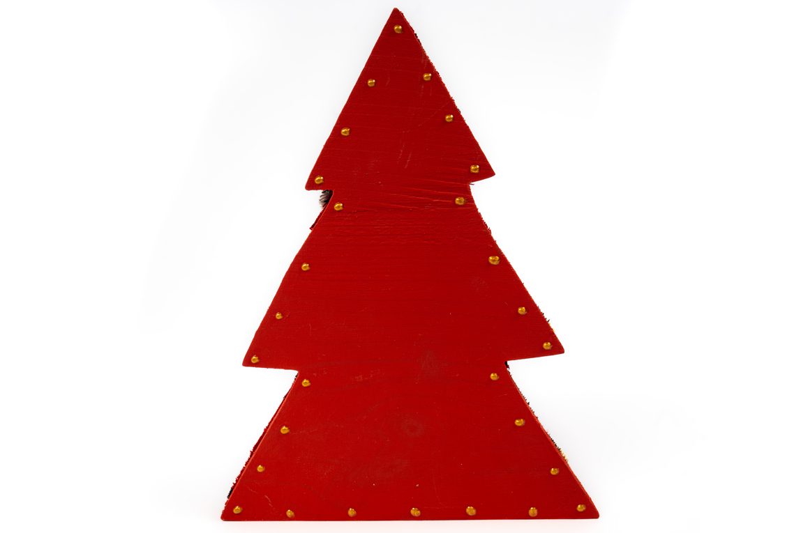 Χριστουγεννιάτικο δεντράκι βαμμένο σε κόκκινες αποχρώσεις με καρώ ύφασμα στην μπροστινή όψη. Η πίσω όψη έχει χρυσά dots ζωγραφισμένα με ειδικό περλέ στυλό