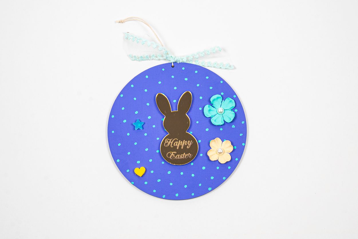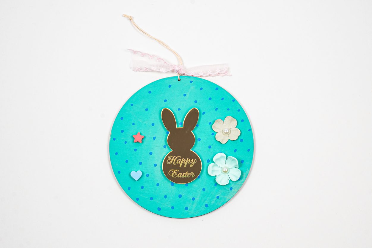 Διακοσμητικό Εκκρεμές Καδράκι Πουά & Κουνελάκι Happy Easter